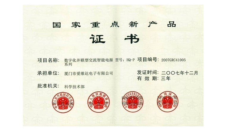 愛維達《數字化并聯型交流智能電源系列》項目獲評“國家重點新產品”;3G基站電源與電力產品實現量產,業績躋身國內通信、電力行業前三。