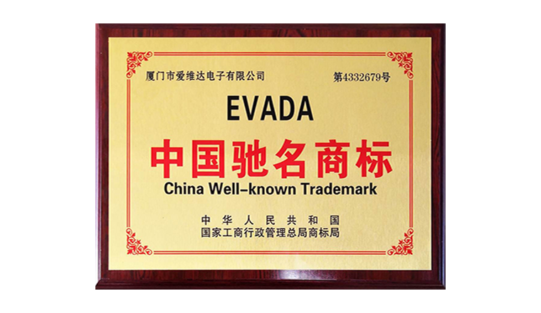 愛維達商標“EVADA”榮獲中國馳名商標,品牌影響力獲權威認證。